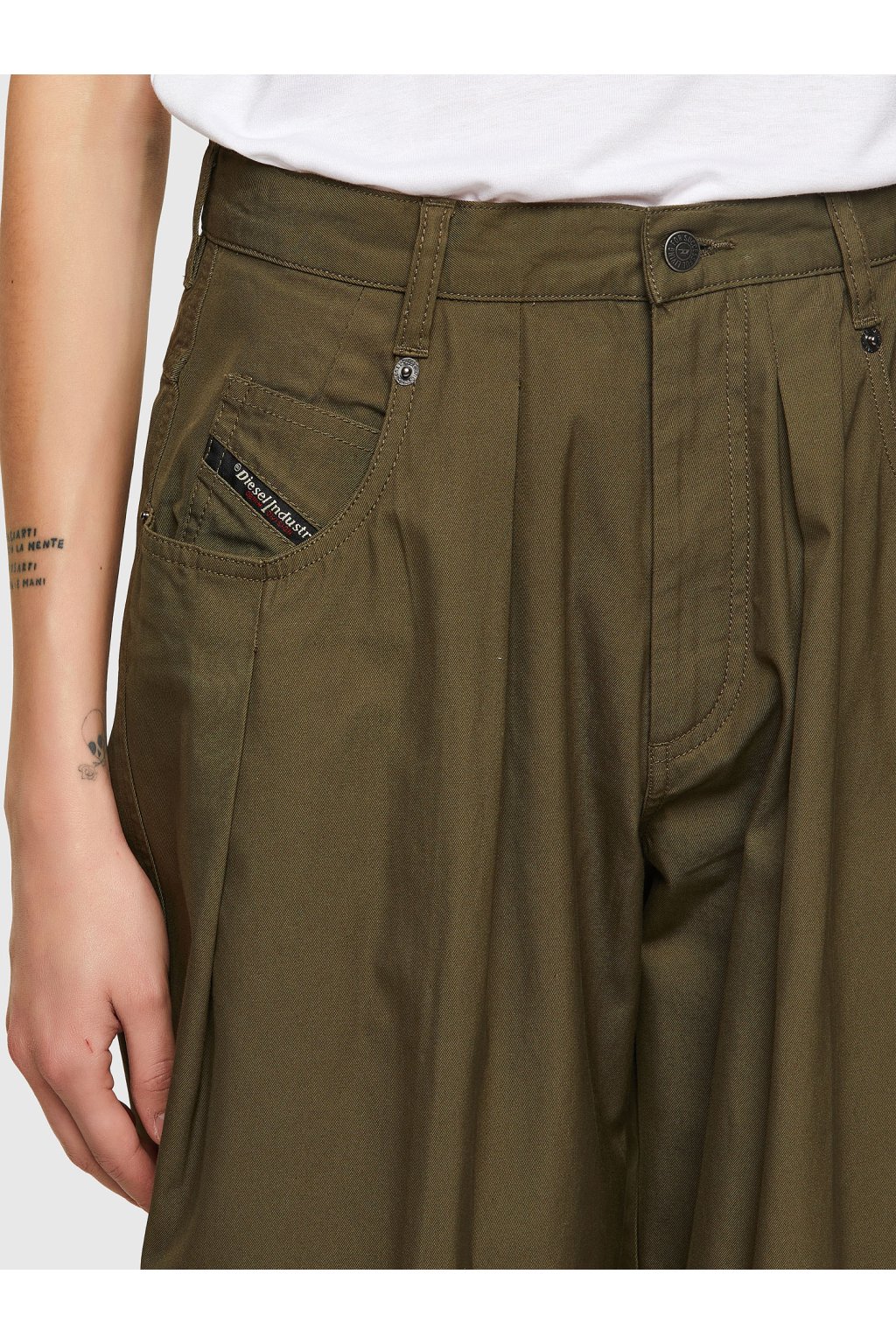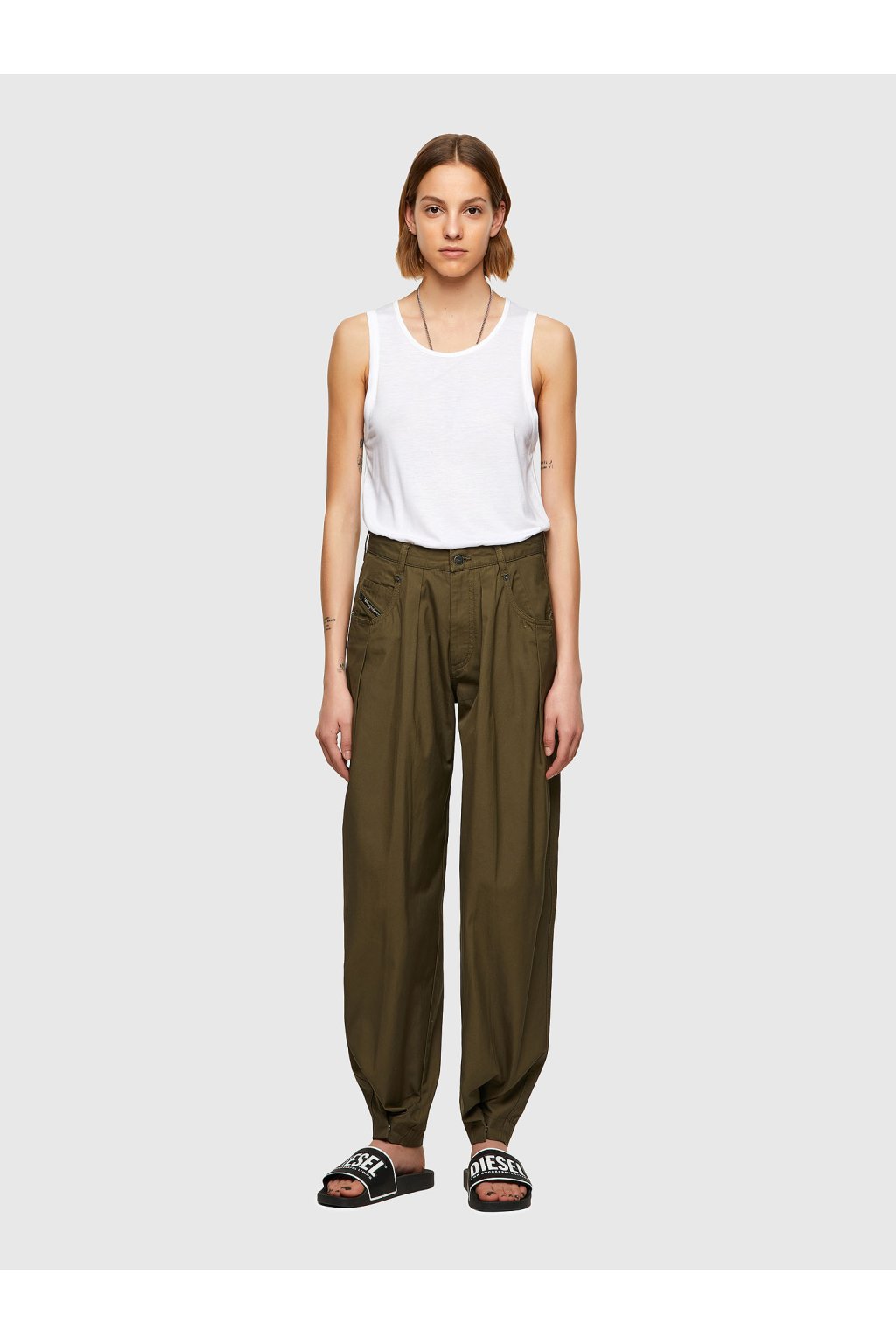 Dámske nohavice Diesel olivovo zelenej farby