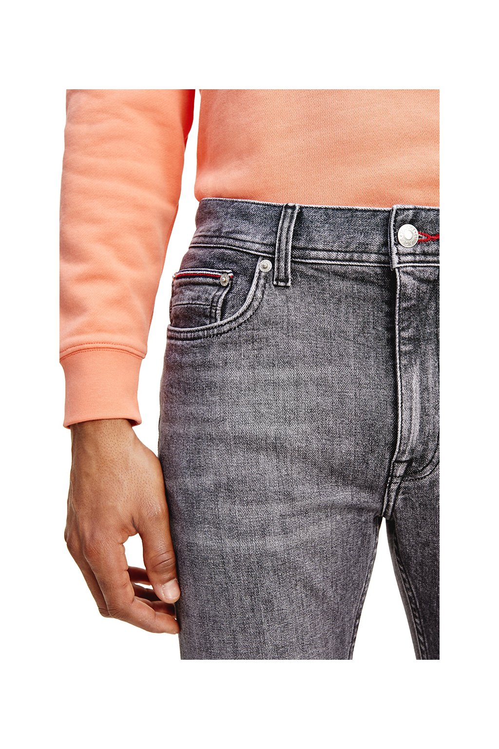 Pánske rifle Tommy Hilfiger sivej farby- efekt pokrčenej a vyšúchanej rifloviny- názov a logo značky umiestnené na zadnom vrecku a vzadu v páse- zapínanie na zips a gombík- v páse pútka na opasok- vpredu 2 šikmé vrecká a 1 hodinkové vrecko, vzadu 2 otvorené vrecká- slim fit strihZloženie:75% bavlna 20% recyklovaná bavlna 3% elastomultiester 2% elastan