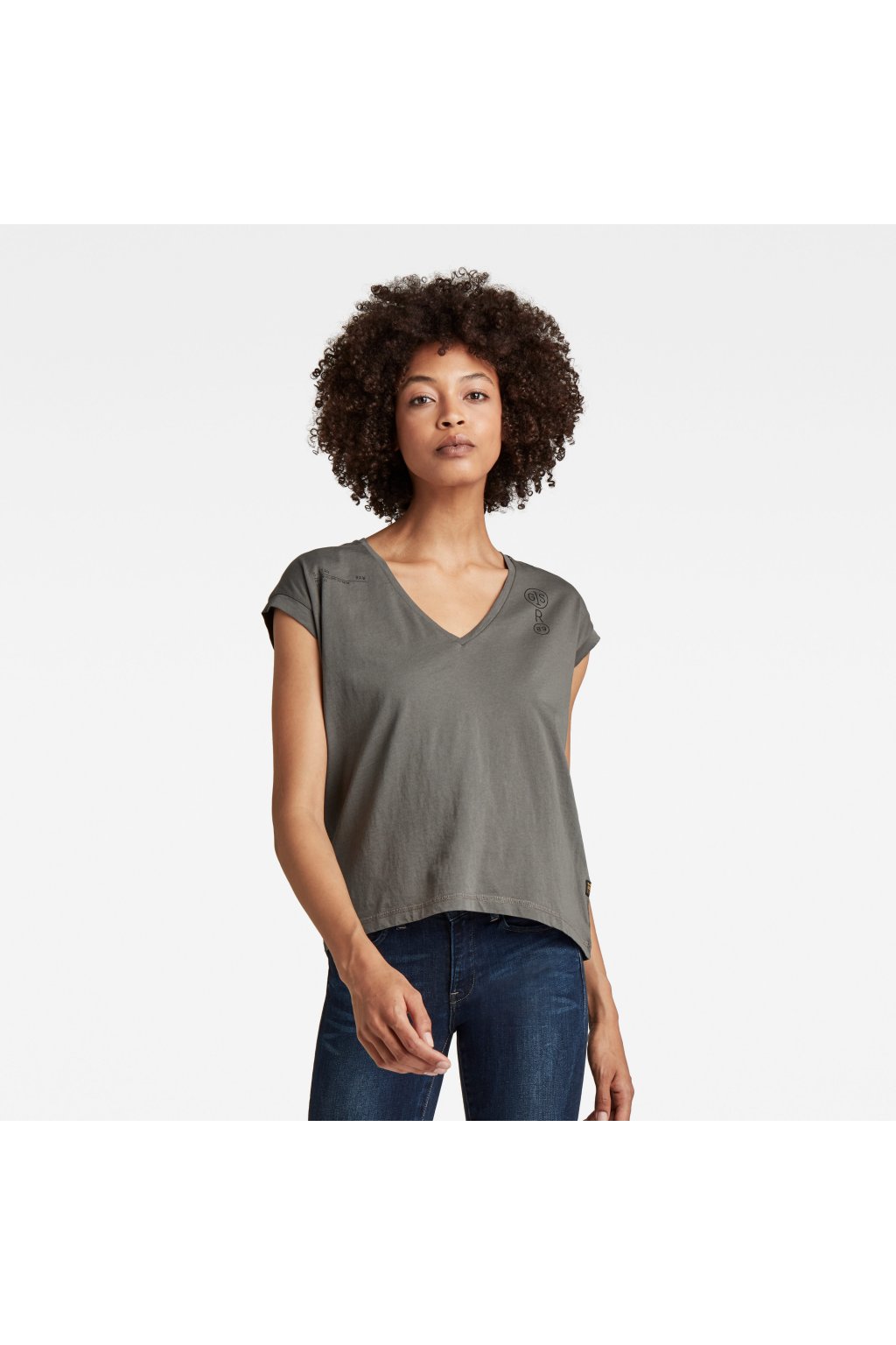 Top - Backprint loose v-neck top šedý