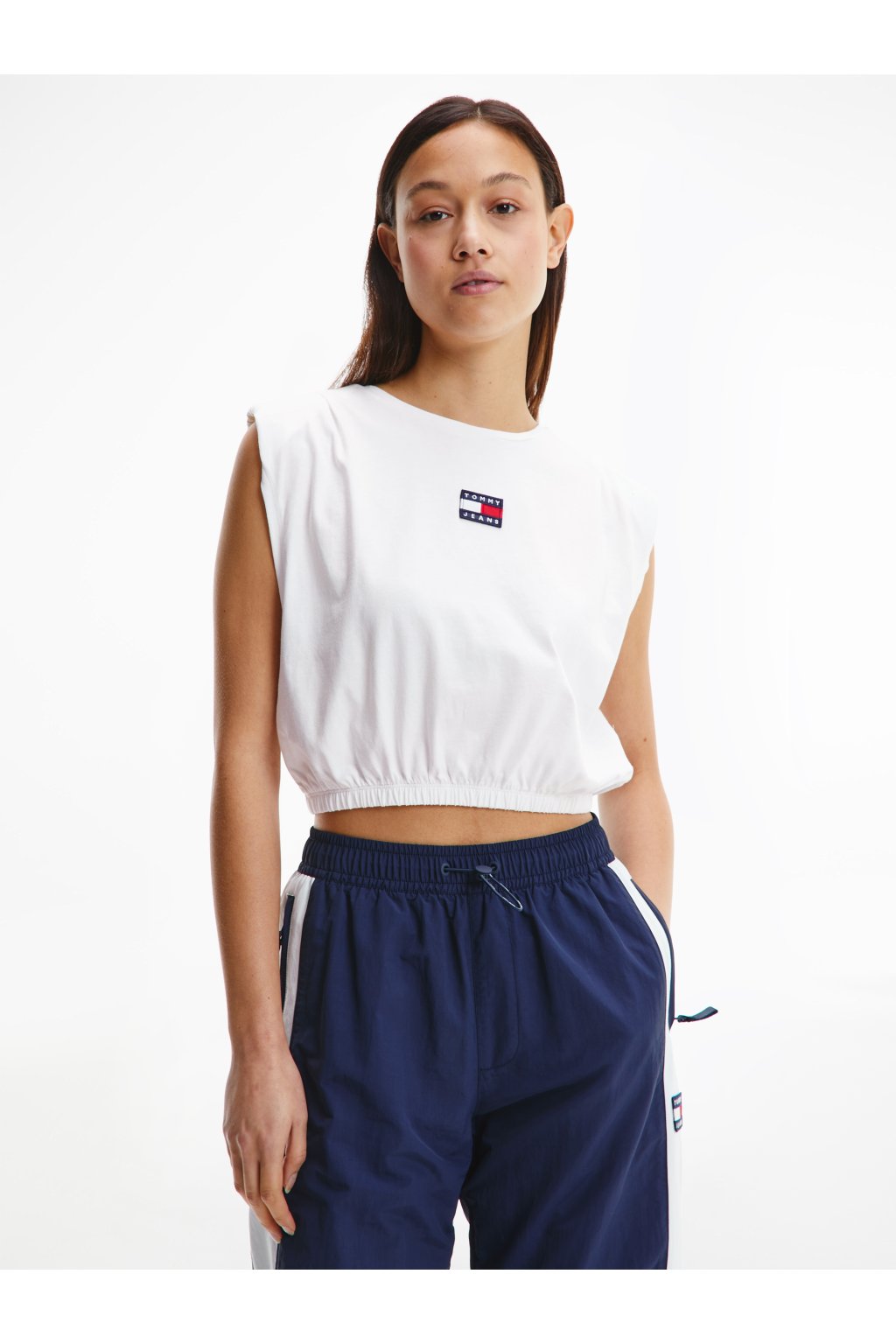 Top - TJW CROP ELASTICATED BADGE TANK biely
